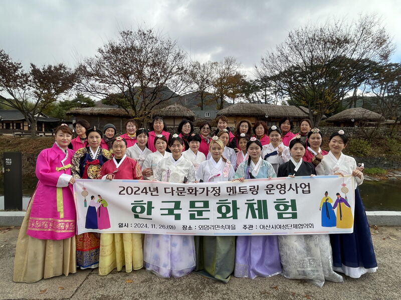아산시 여성단체협의회(회장 장복연, 이하 협의회)가 지난 26일 외암리민속마을에서 결혼이주 여성을 대상으로 ‘다문화 여성 한국문화 체험’행사를 가졌다.
